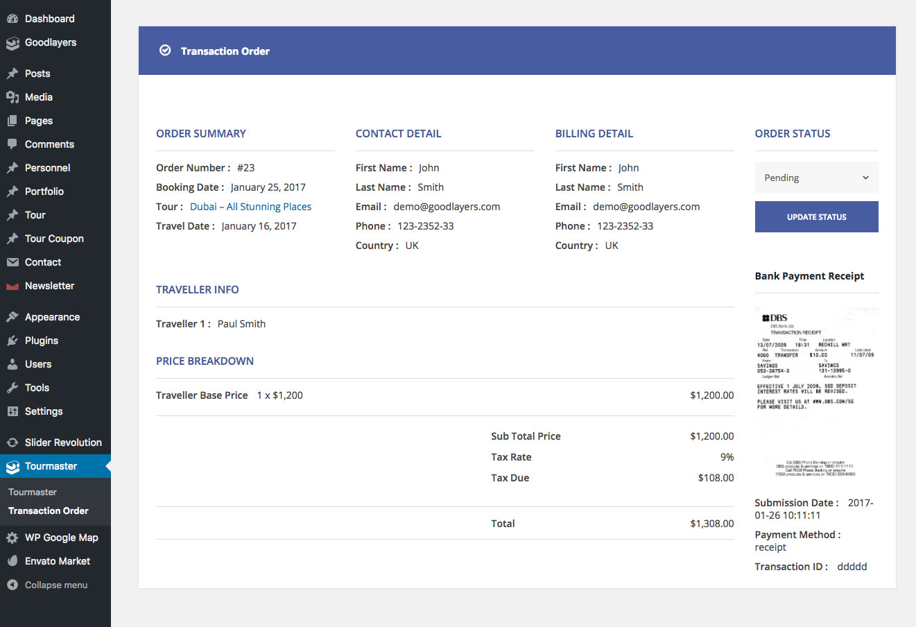 Admin – Single Transaction